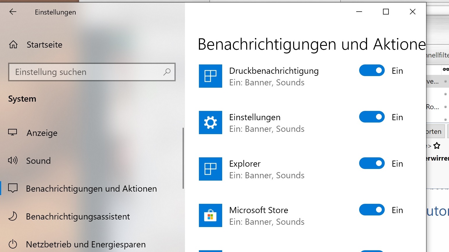 Die Systemapps werden auf einer anderen Seite übrigens noch separat konfiguriert. Da kannst du auch sehr fein einstellen wann du in welcher Form Systemnachrichten erhalten willst. Toast Nachricht, mit Sound oder ohne, nur per Eintrag im Actioncenter, etc.