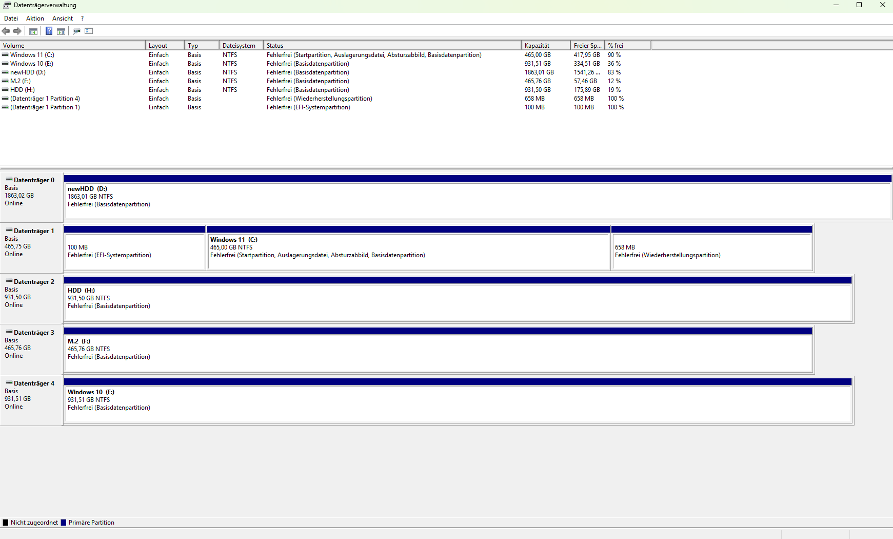 Was wird dann mit den Windows Daten auf Disk4? Ich würds bevorzugen, wenn das Betriebssystem auf der Disk4 bleibt (oder sogar auf Disk3 rübergewechselt wird mithilfe von 3rd-party software wie EaseUS), da die Disk1 SSD schon über 4 Jahre alt ist und ich nicht riskieren will, dass diese in den nächsten paar Jahren vielleicht ausfallen könnte.