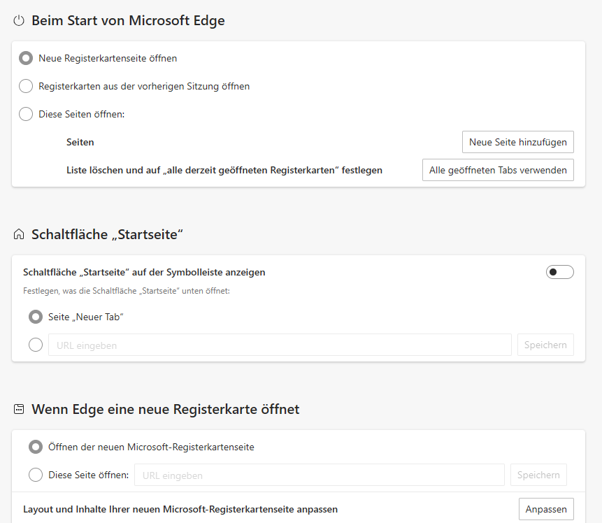 Windows 10 Browser Edge neue Darstellung zurücksetzen?