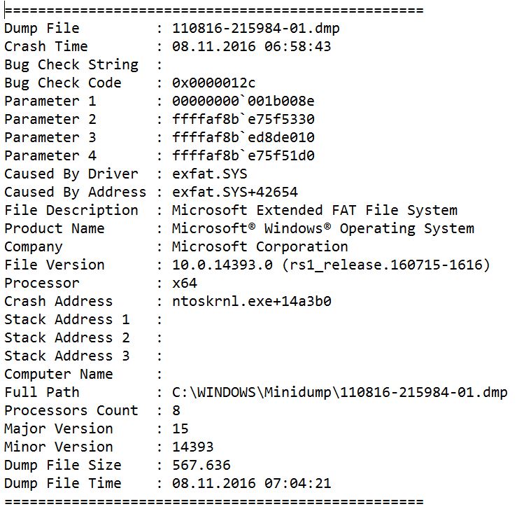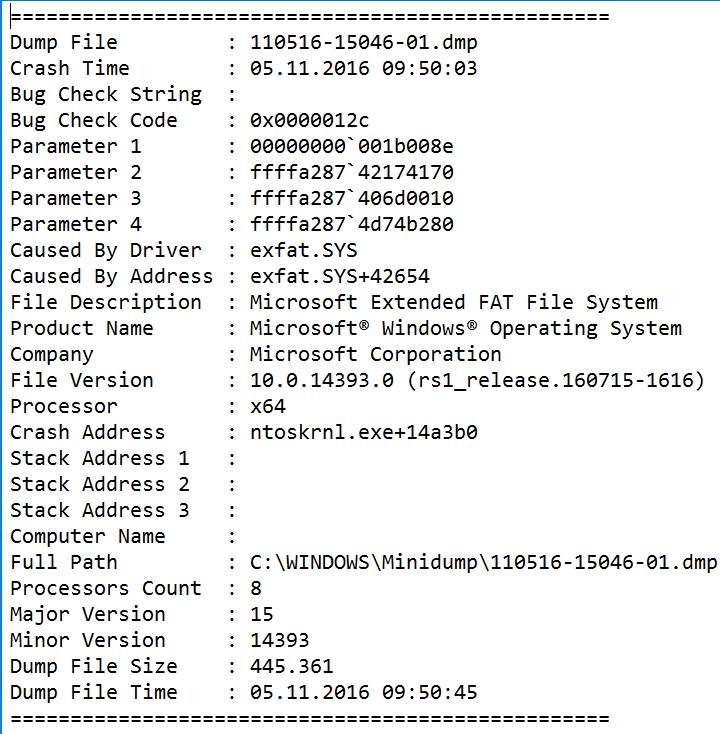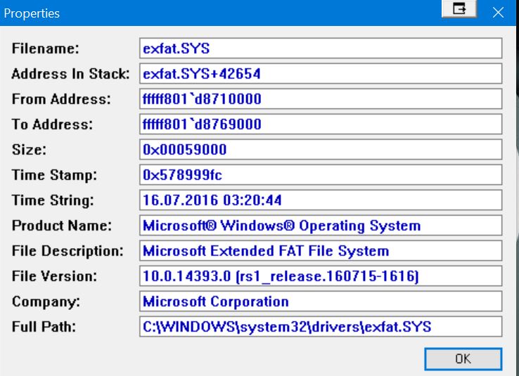 Fehlermeldung bezog sich auf exFAT etc. Printscreen per BlueScreenViewer hänge ich heute abend an.