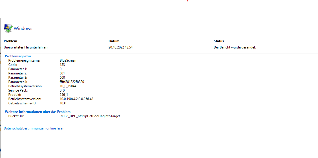 Wenn dann noch ein blue screen auftritt die dann neue Dumpfile hier wieder hoch laden.