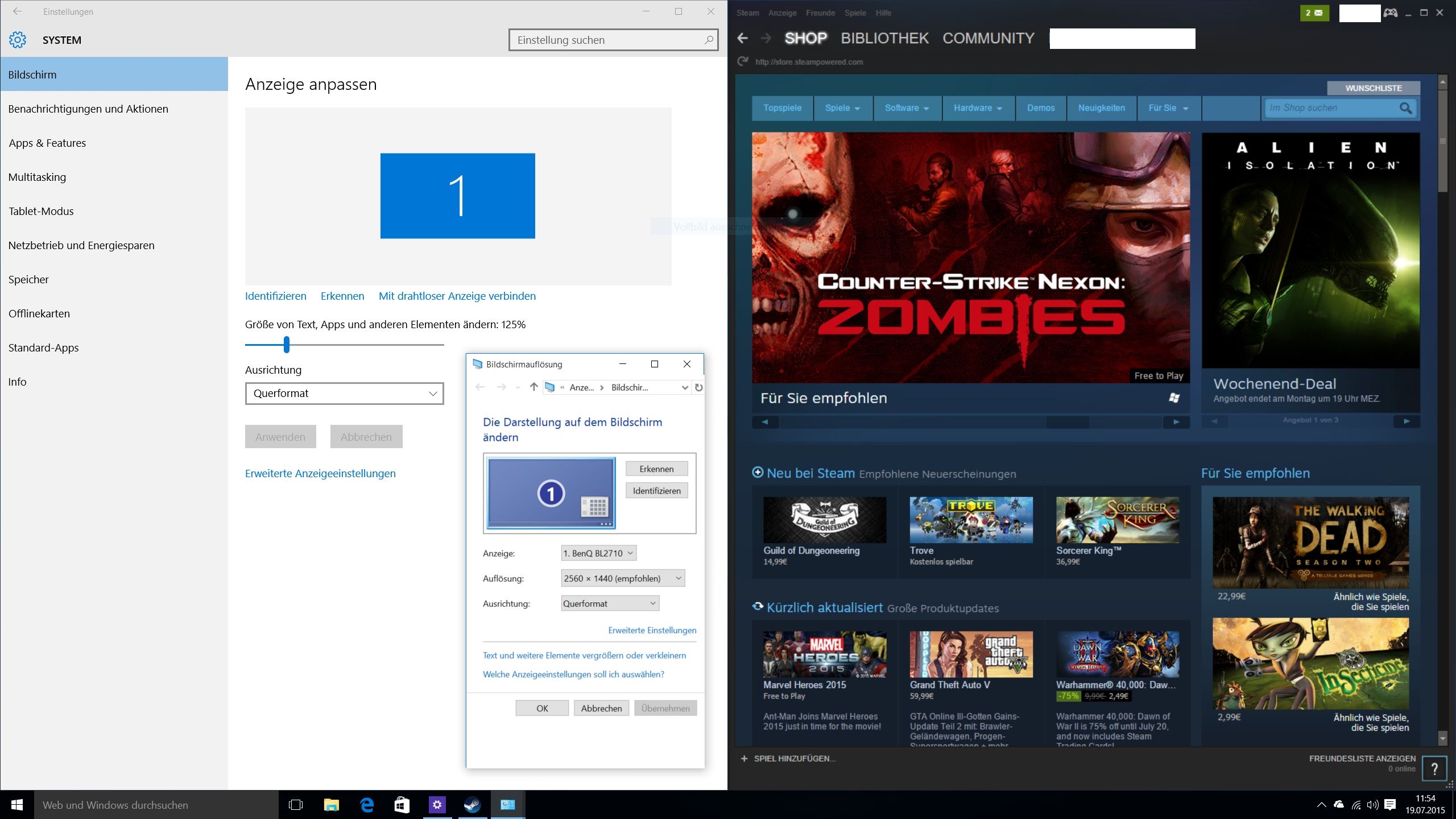 Und komme mir nicht blöd - der "NUC" (= Desktop-Rechner) hängt "nativ" an einem 27" Monitor (BenQ BL2710 - auf dem Screenshots zu sehen) mit WQHD 2560x1440p. Genauso gut hätte ich mein Convertible mit 2560x1440p nehmen können, das tut doch gar nichts zur Sache.