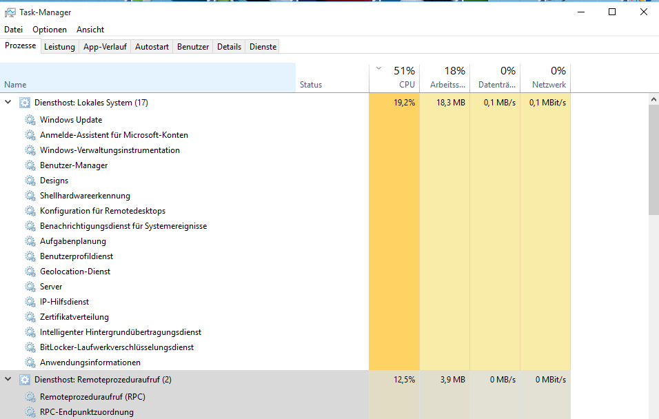 Darauf hin öffne ich den Taskmanager und stelle dies fest: (siehe bild)