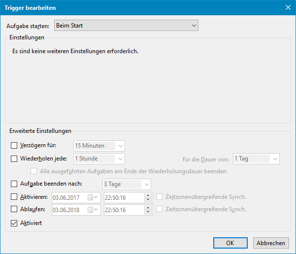 Sollte es Probleme mit dem Autostart geben bei dem Tool, dann könnt ihr auch als Ersatz eine Aufgabenplanung in Win10 dazu anlegen. Hierfür hab ich euch ebenfalls die richtigen Screens mit angehangen an den Beitrag !