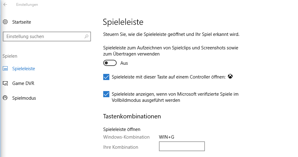 Wenn ich den Schalter einschalte und das Fenster schließe, ist er nächstes mal wieder auf "Aus". Auch lässt sich die Spieleleiste in Spielen nicht öffnen. Was kann ich da machen?