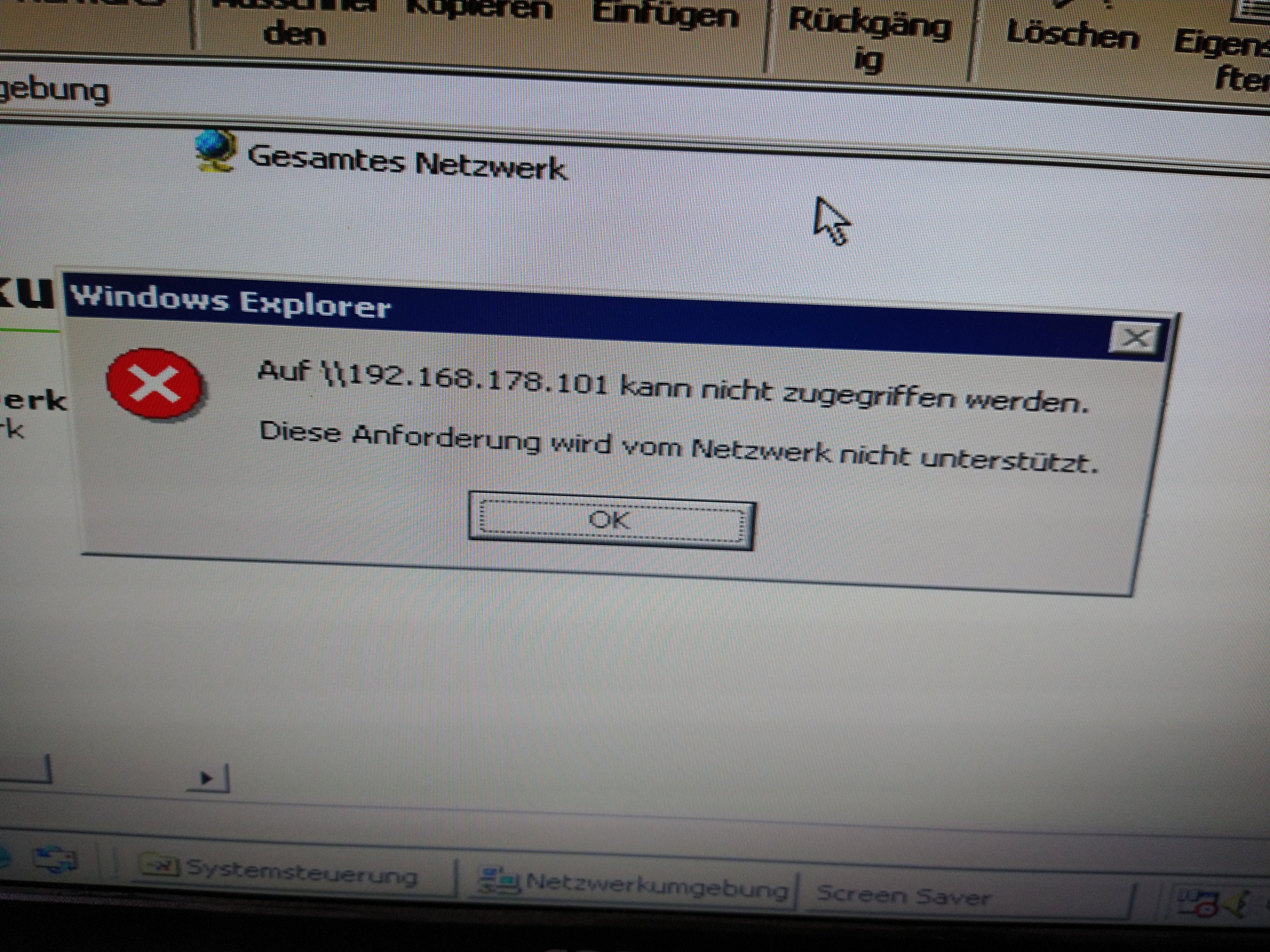 Führe ich nun mit dem Windows 98SE PC die Netzwerkverbindung zum Windows 10 PC aus, kommt eine andere Fehlermeldung nämlich "Auf \\Netzwerkname kann nicht zugegriffen werden. Diese Anforderung wird vom Netzwerk nicht unterstützt." Mein Verdacht liegt nahe irgendetwas in Richtung Windows 10 ist noch aktiv was nicht sein darf, weil der Windows 98PC immerhin erkennt, dass ein anderer Rechner im Netzwerk sein muss.