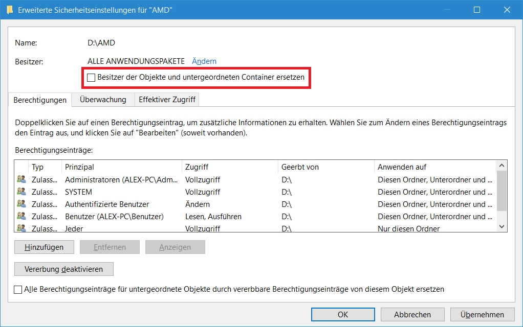 Funktioniert auch alles. Jedoch habe ich auf den Windows User Ordner, wo die meisten Daten sind keine Zugriff.