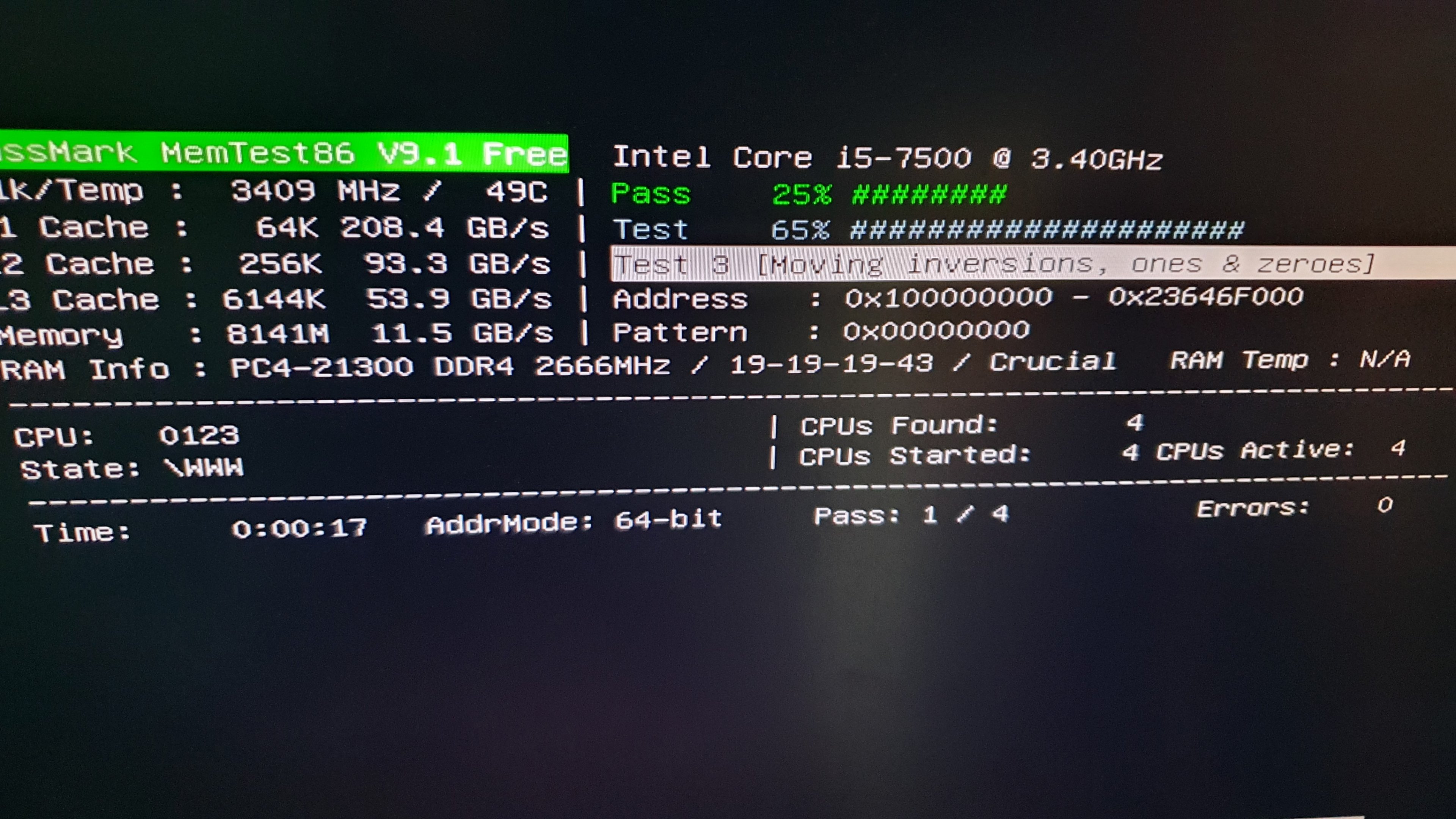 16GB DDR4 - 2400Mhz Dual 19-19-19-39 (Sind zwar beides Crucial Sticks, aber einer ist eigentlich ein 2400er und einer ein 2666er; im Bios auf die angegebenen Werte gesetzt)