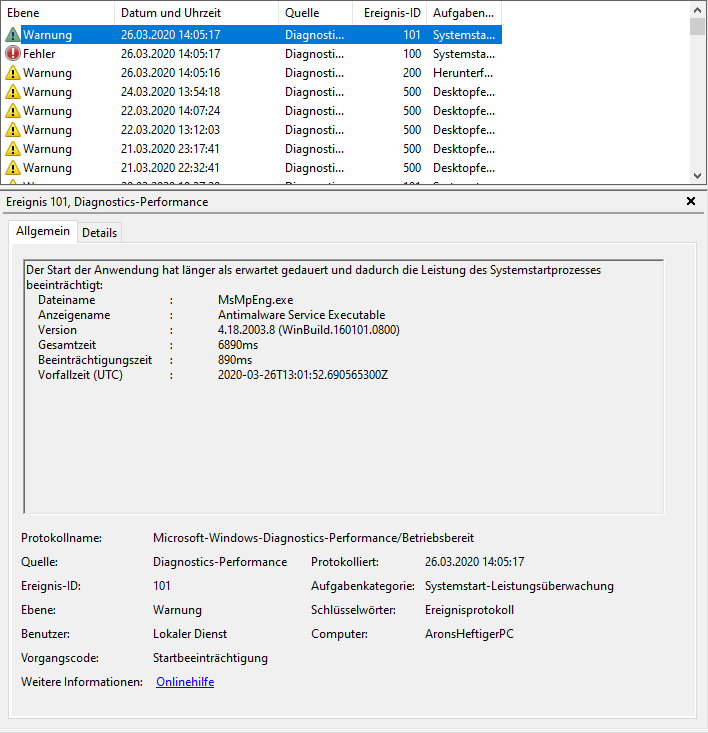 Seit 2 Wochen braucht mein PC länger als sonst um den Desktop zu laden