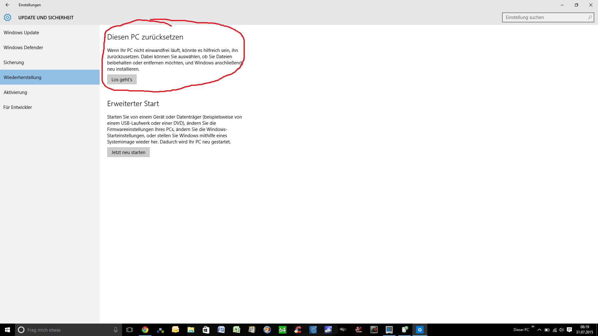 Speicherplatz habe ich 25GB frei. Daran sollte es nach einigen Angaben von Usern nicht scheitern.