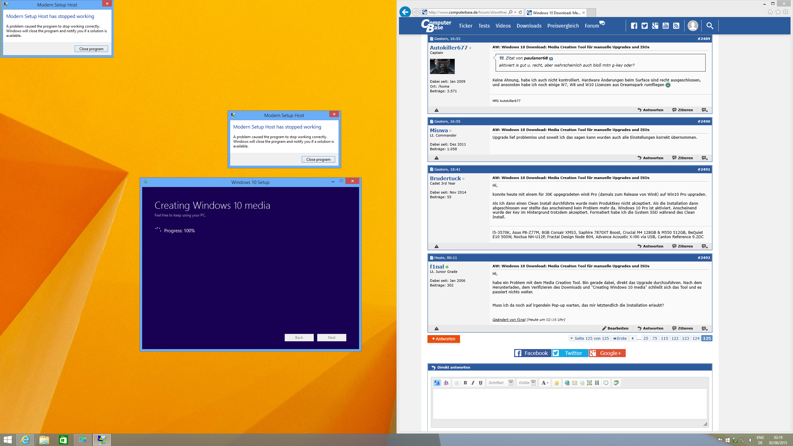 habe ein Problem mit dem Media Creation Tool. Bin gerade dabei, direkt das Upgrade durchzuführen. Nach dem Herunterladen, dem Verifizieren des Downloads und "Creating Windows 10 media" schließt sich das Tool und es kommt diese Meldung: