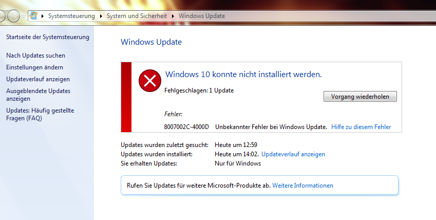 Habe heute 2 mal versucht upgrade über W10 in der Taskleiste zu machen und 2 mal nach Installation und Neustart gibts ein Fehler und W7 wird wiederhergestellt