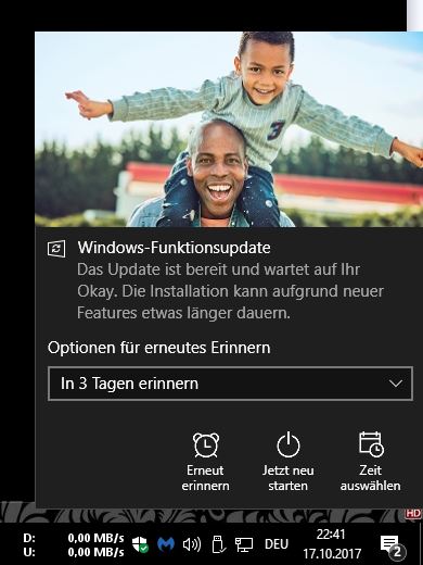 Funktionsupdate für Windows 10, Version 1709