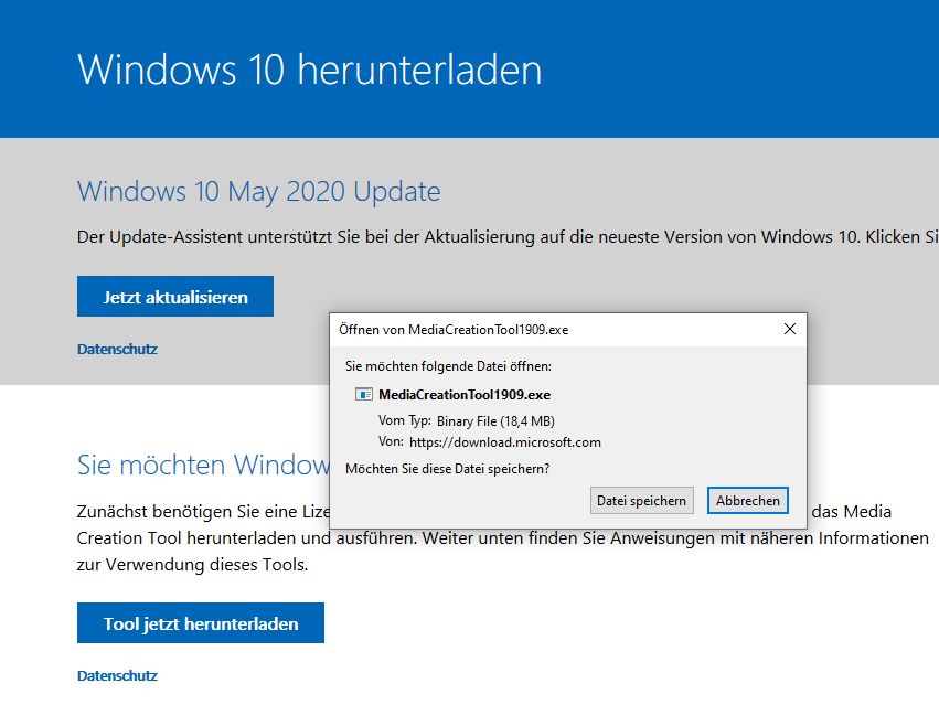 Da gehst du auf den Button "Tool jetzt herunterladen" und lädst das sogenannte Media Creation Tool runter.