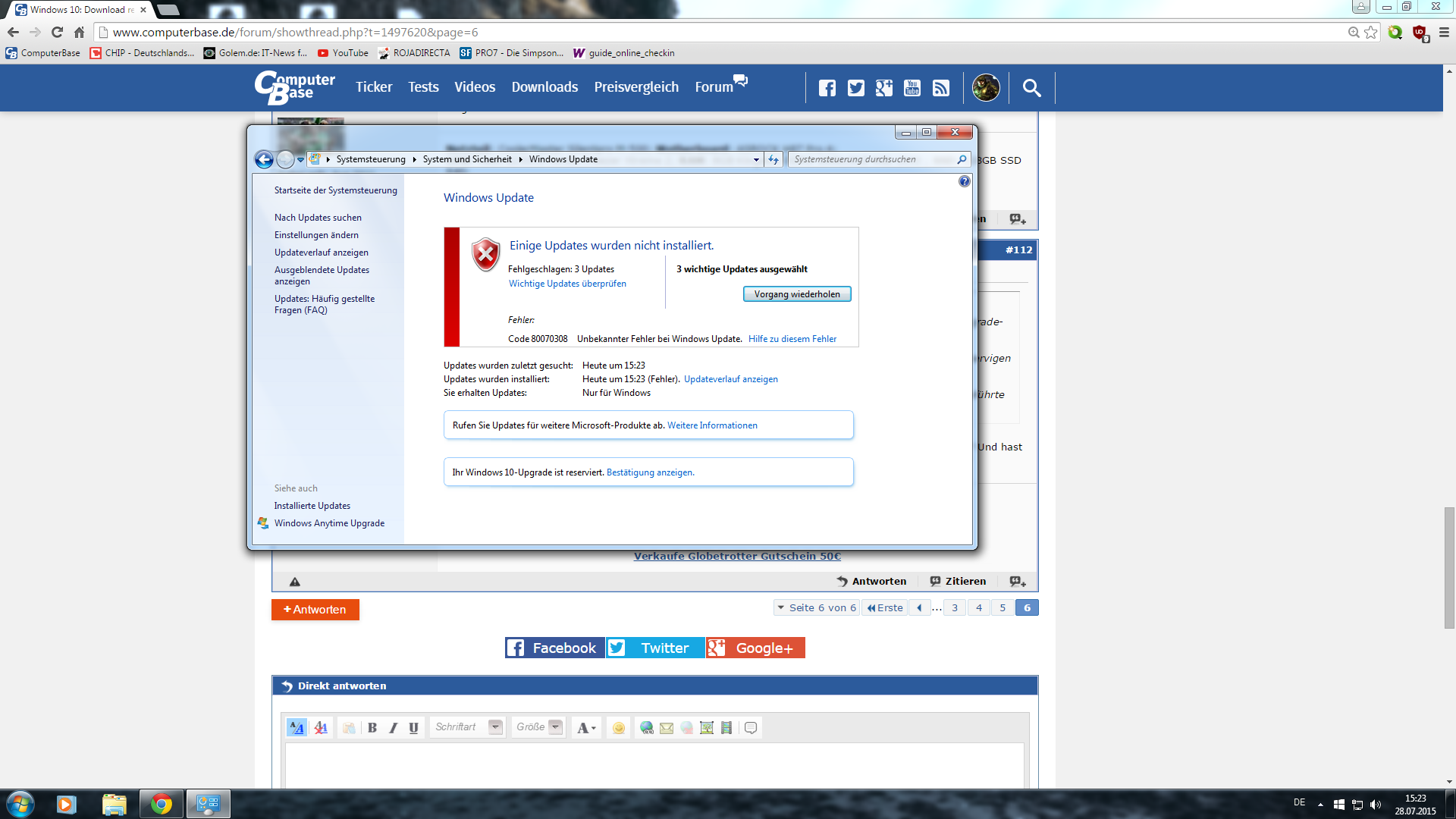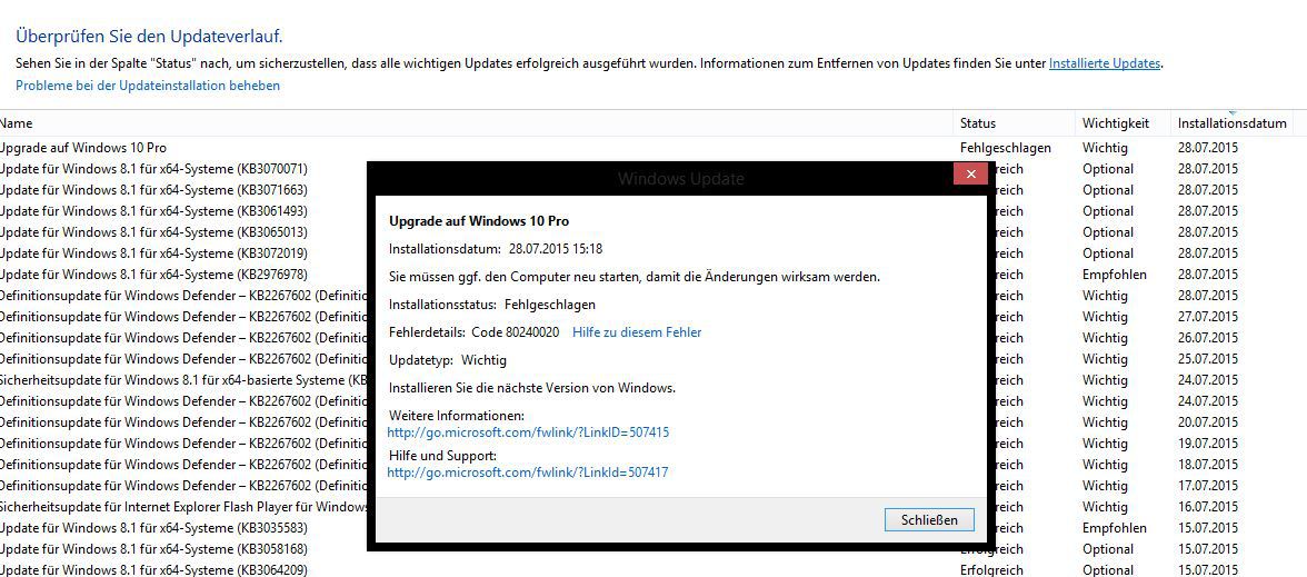 Dieser Fehlercode bezieht sich auf das fehlgeschlagene Update.....