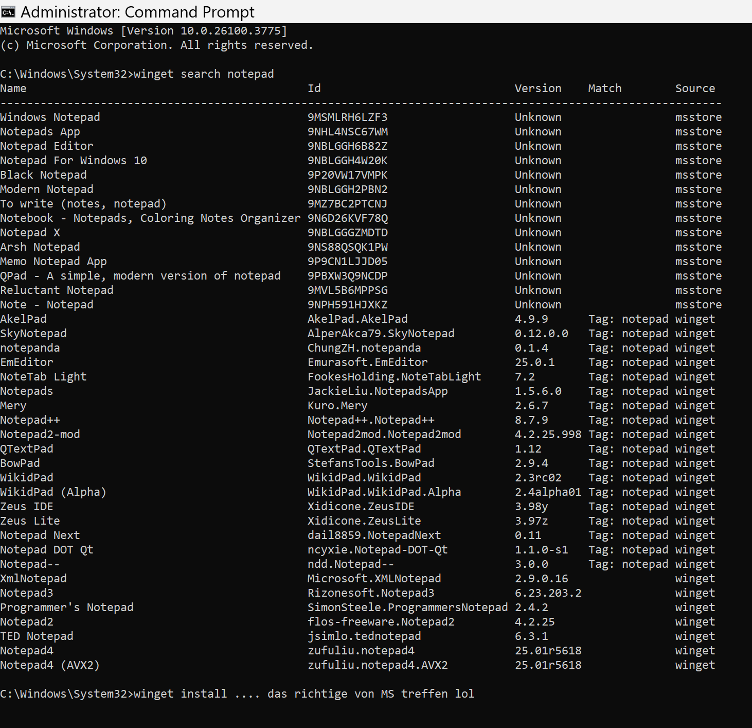 😁 We Linux now. Glaube ich hab die Kommandozeile nur einmal aus Spaß benutzt um die Apps, also alle Apps zu aktualisieren, naja, ob ich das die Jahre brauchen werde... E: Ich mein den Store via Kommandozeile, den Store nutze ich eigentlich nicht, auch nicht via Kommandozeile, aber naja. 🤷