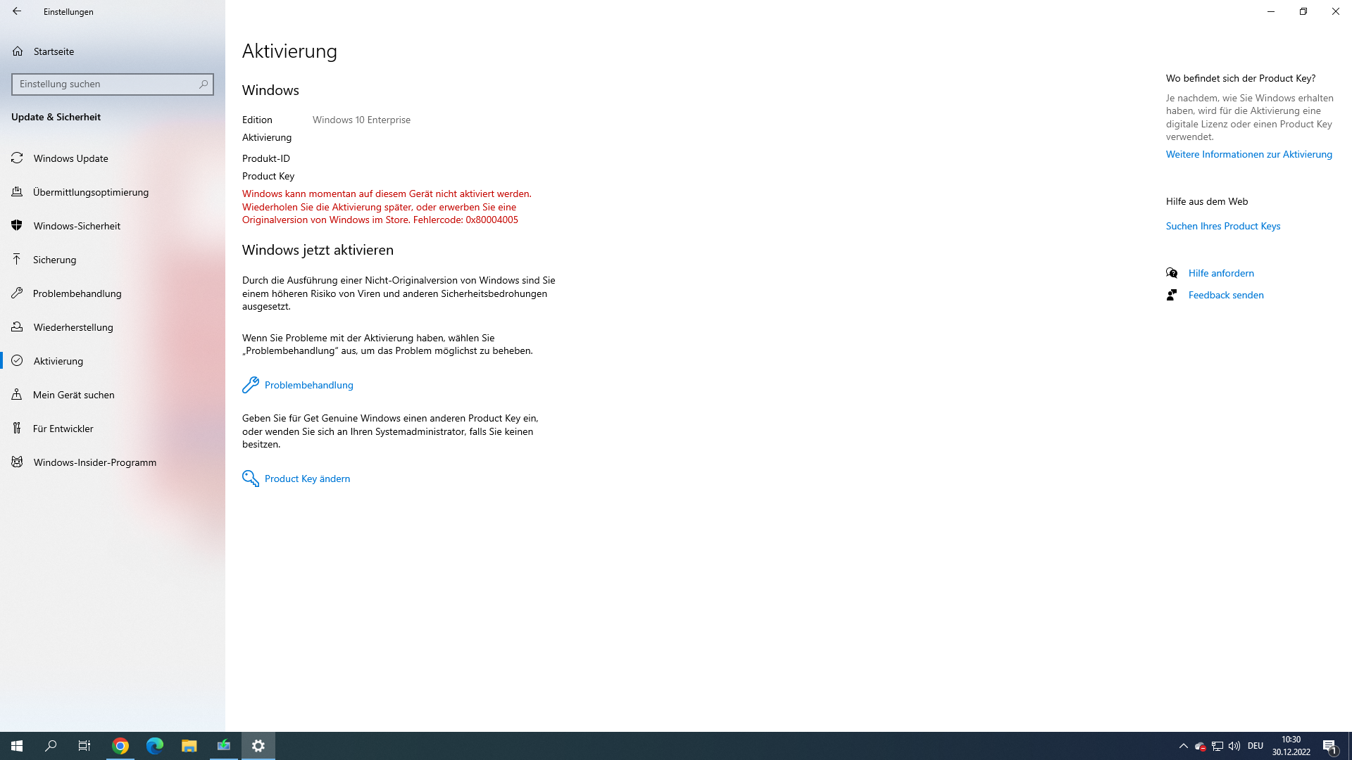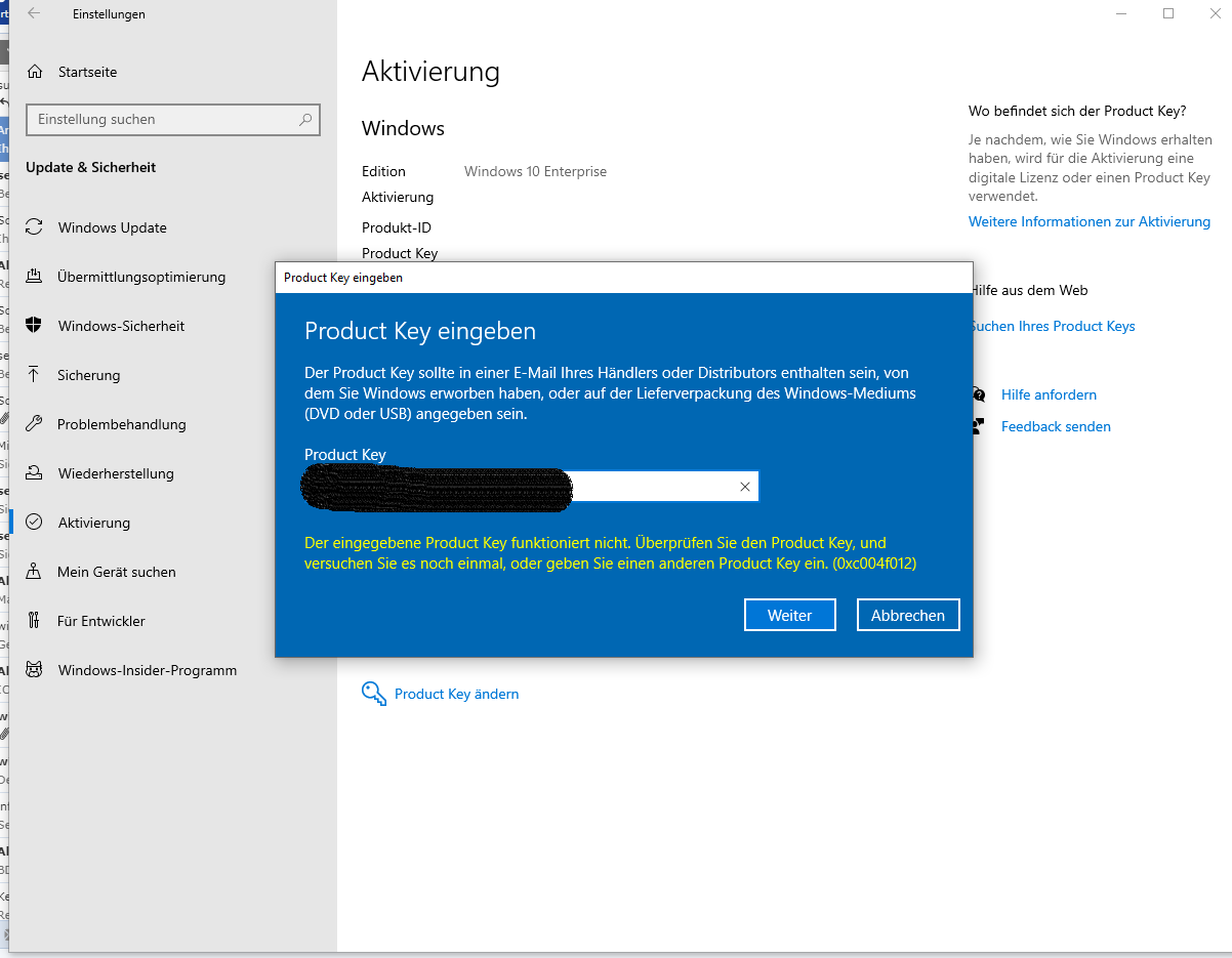 Beim wieder ausetzten hatte ich das Problem das ich kein Windows 10 Pro mehr hatte sondern Windows 10 Enterprise.