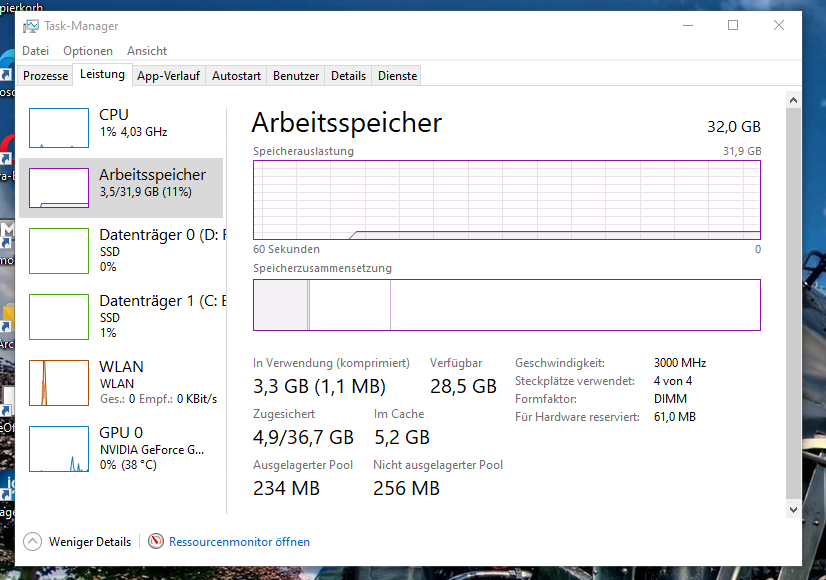 ich habe bei meinem Computer die CPU getauscht. Seit dem werden von Windows nicht mehr alle RAM-Riegel erkannt. Statt 64 GB werden nur 48 angezeigt. CPU-Z zeigt aber alle 4 an. Ich habe alle RAM-Riegel durchgewechselt. Alle werden erkannt.