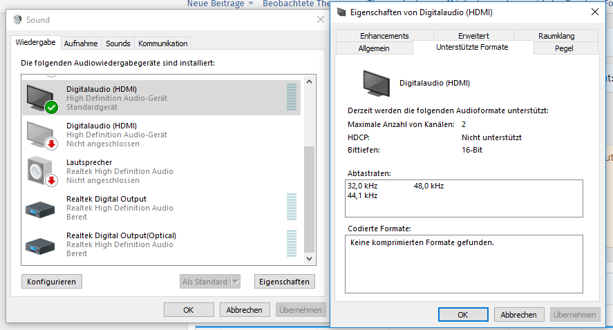 ich bin mittlerweile mit meinem Latein am Ende. Bisher habe ich immer über die 3 Audiobuchsen am Motherboard mein altes 5.1 Set Betrieben, lief über RealtekHD Audiomanager ohne Probleme. Nun habe ich ein neues 5.1 Soundsystem mit AVR (Denon x3500H).
