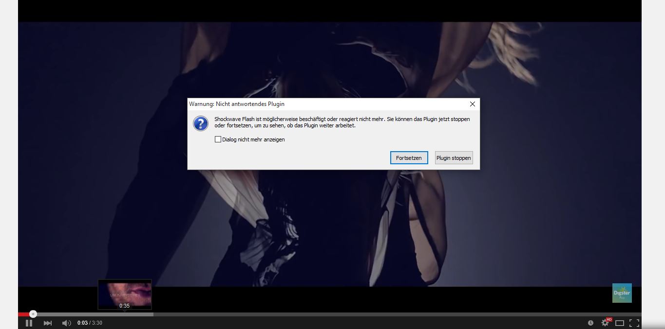- Bild und Ton läuft, durch scrollen auf Laufleiste läuft derTon weiter, dann stürzt der Player ab.