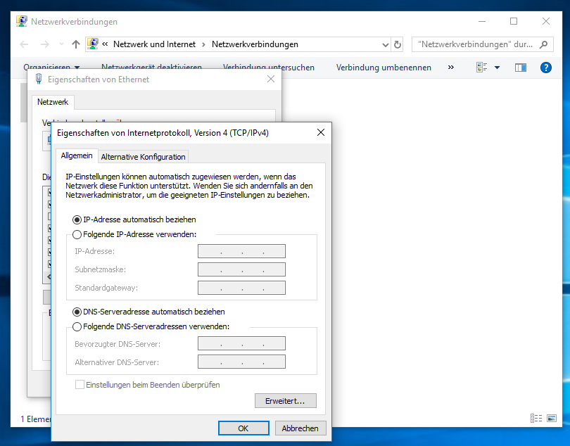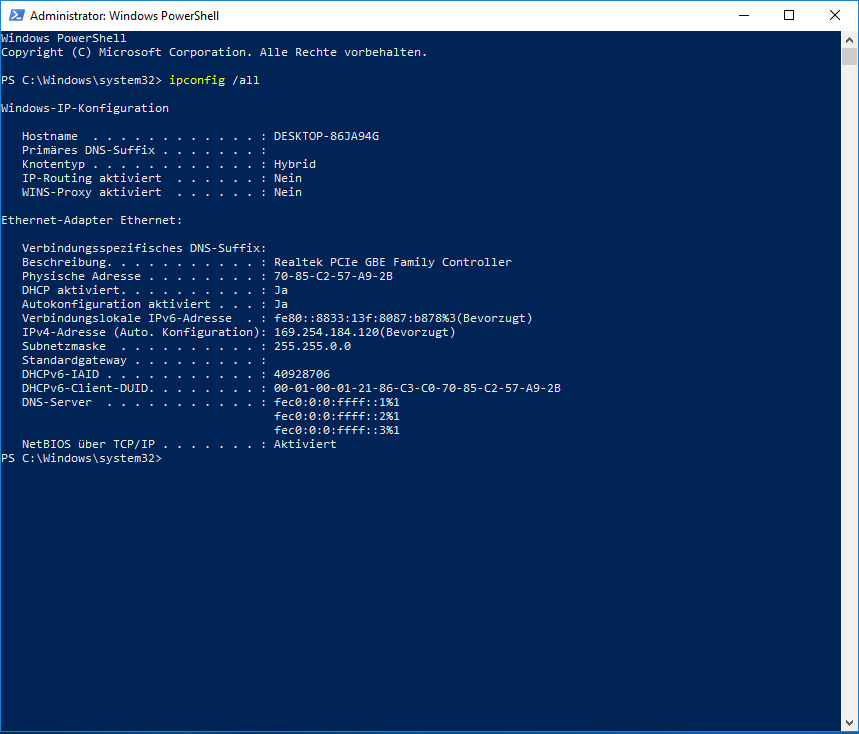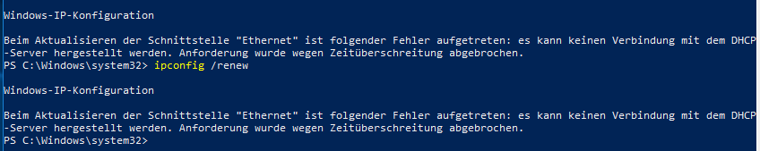 Beim Befehl „ipconfig /renew“ kam zu meiner Überraschung Folgendes heraus: (Hatte das gestern nicht)