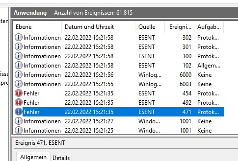Ich sehe da Esent. Hast du das Esent Antivirusprogramm auf deinem PC?