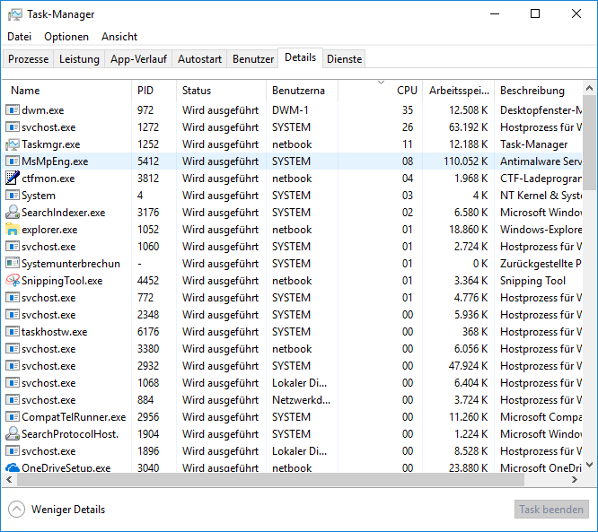 Weist eine CPU last von 100% auf beim nichts tun.