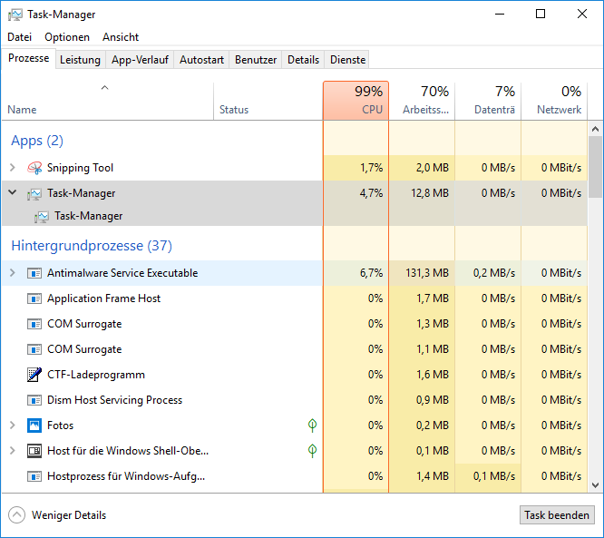 Ergebnis 99% Cpu last.