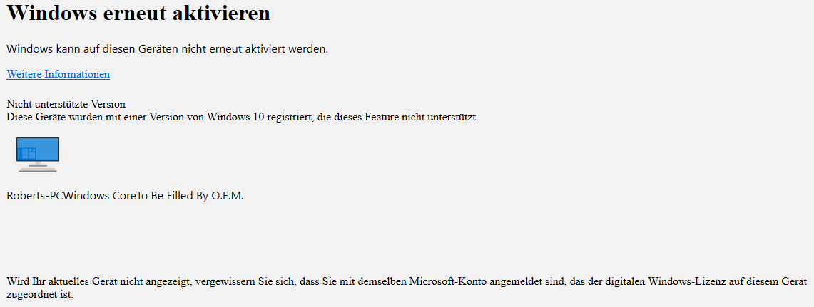 Der Key sollte ja laut Internet und Microsoft übertragbar sein... bei mir irgendwie nicht.