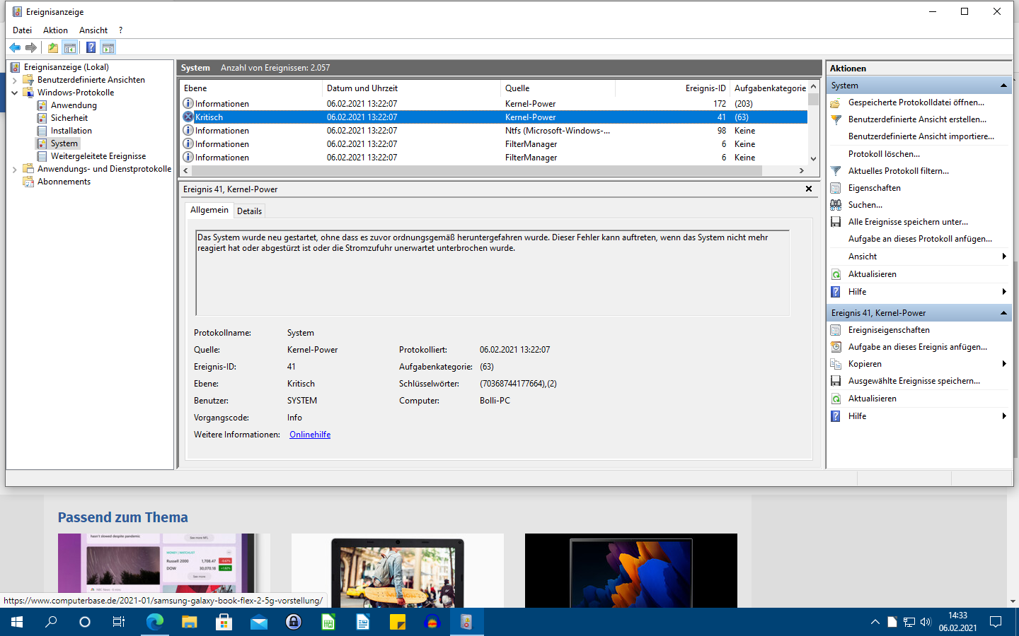 Kernel Power 41/63 Problem was fast täglich auftritt