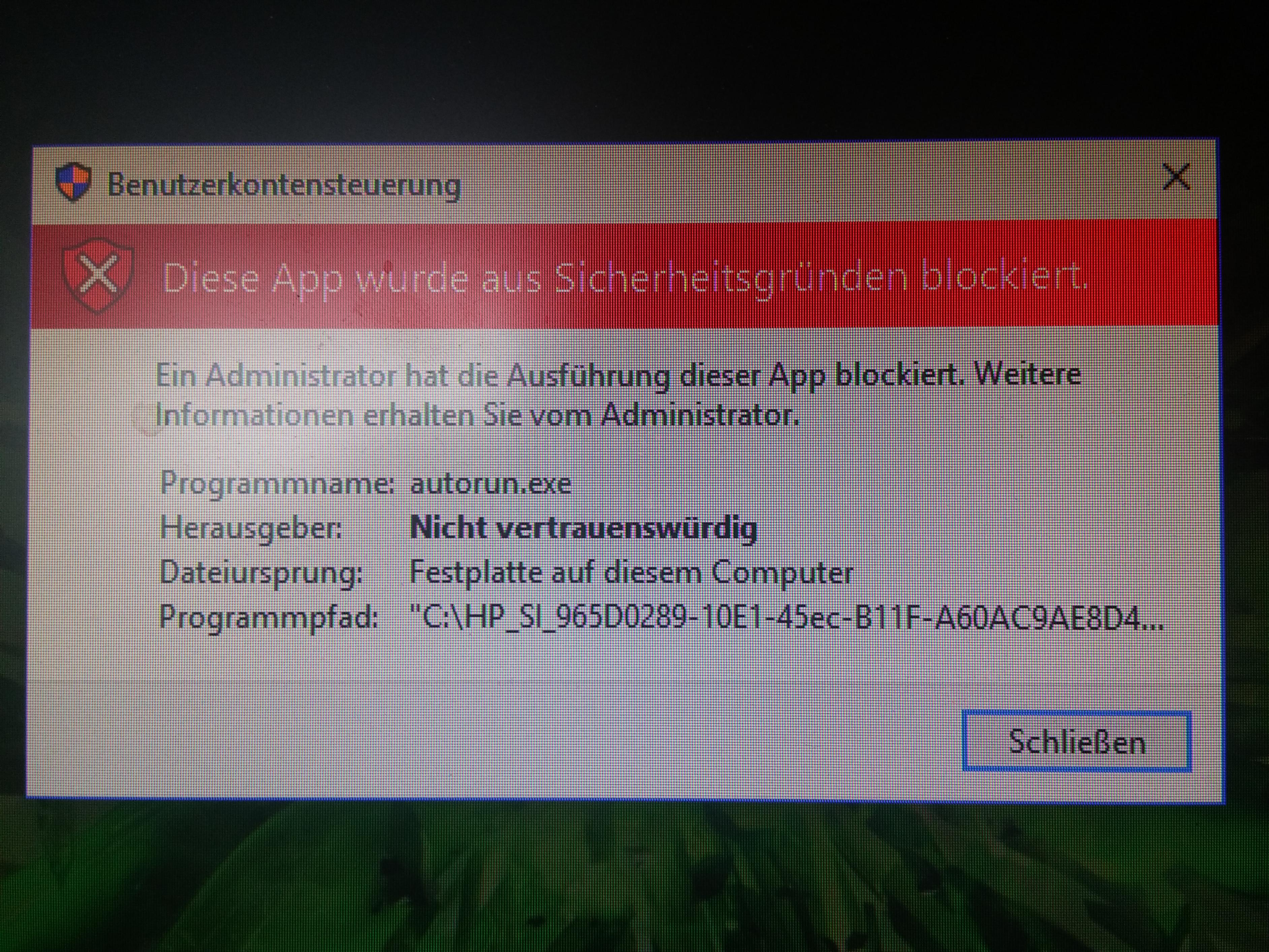 Die Automatische Installation wenn der Drucker angeschlossen wird, wird von Windows blockiert (Nicht vertrauenswürdig/Unbekannter Herausgeber).