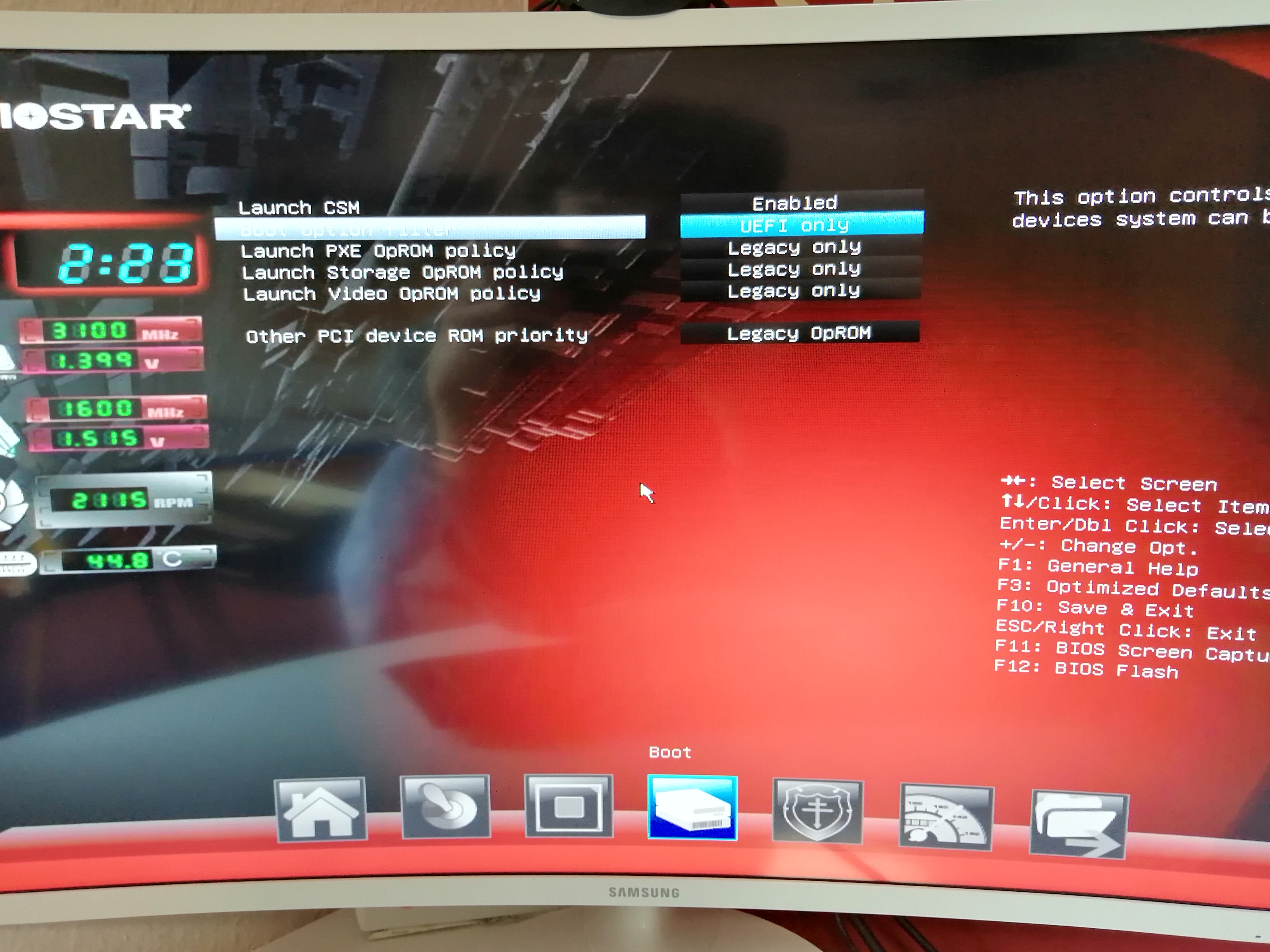 Schalte ganz oben auf dem Bios Screenshot "Lunch CSM" mal aus.