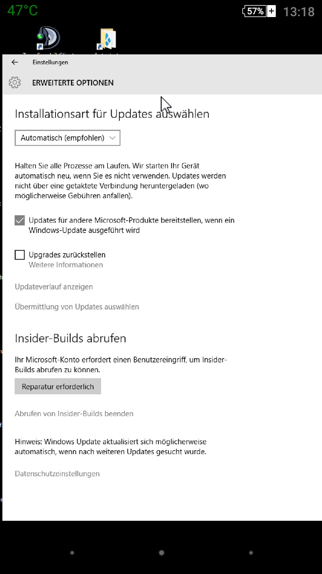 Dafür steht unter Updates, dass ich alle Einstellungen für den Abruf der Insider-Build vorgenommen hätte..