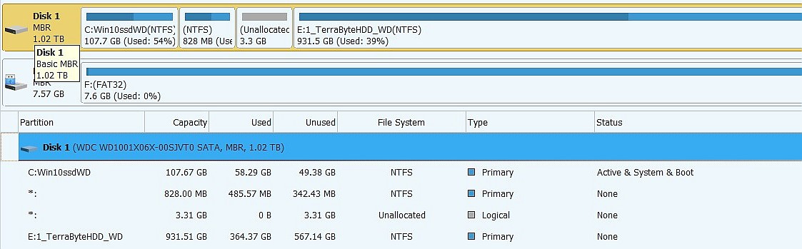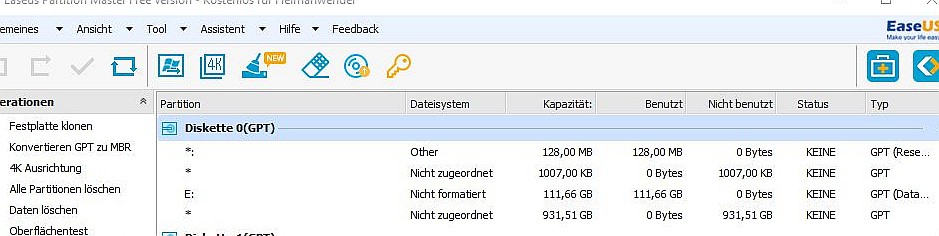 dann freier Bereich für die HDD knapp 1TB frei zu Partitionieren wie man möchte
