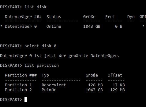 die ersten 128MB als Unbekannt war die MSR-Partition