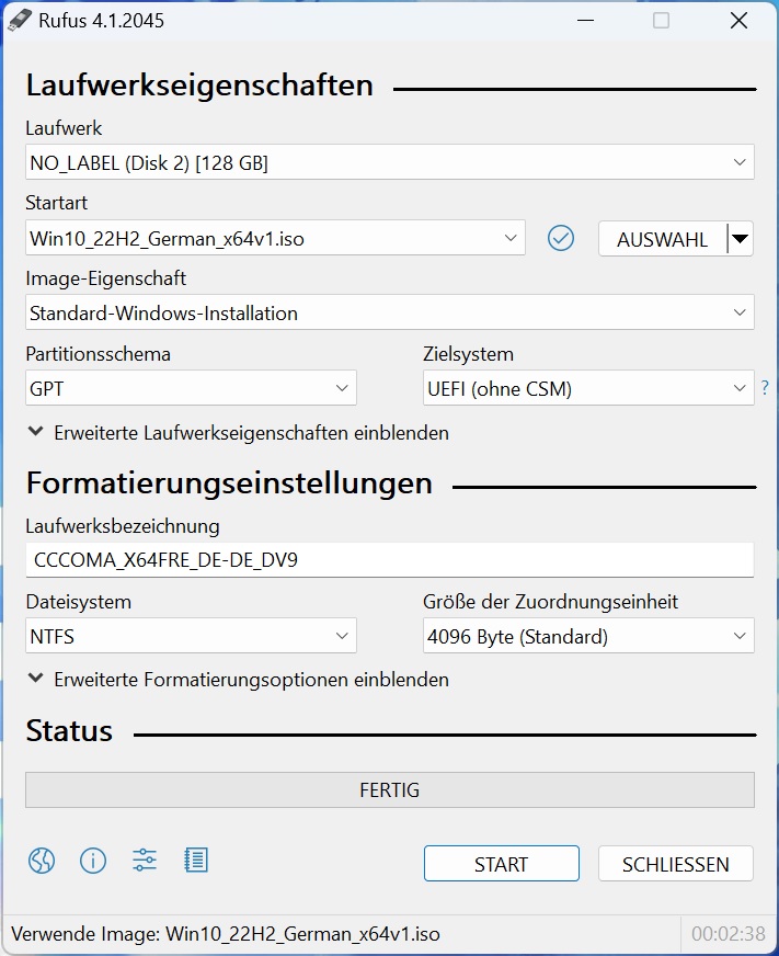 Richtig. Genau so und noch einige andere Variationen habe ich probiert.firewheels schrieb:Halten wir mal fest du hast Windows 1022H2 mit Rufus wie unten dargestellt erstellt?