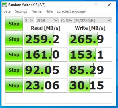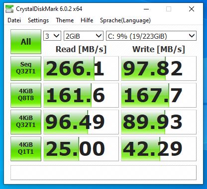 Habe CrystalDiskMark noch ein paarmal durchlaufen lassen und das kam nun dabei raus -