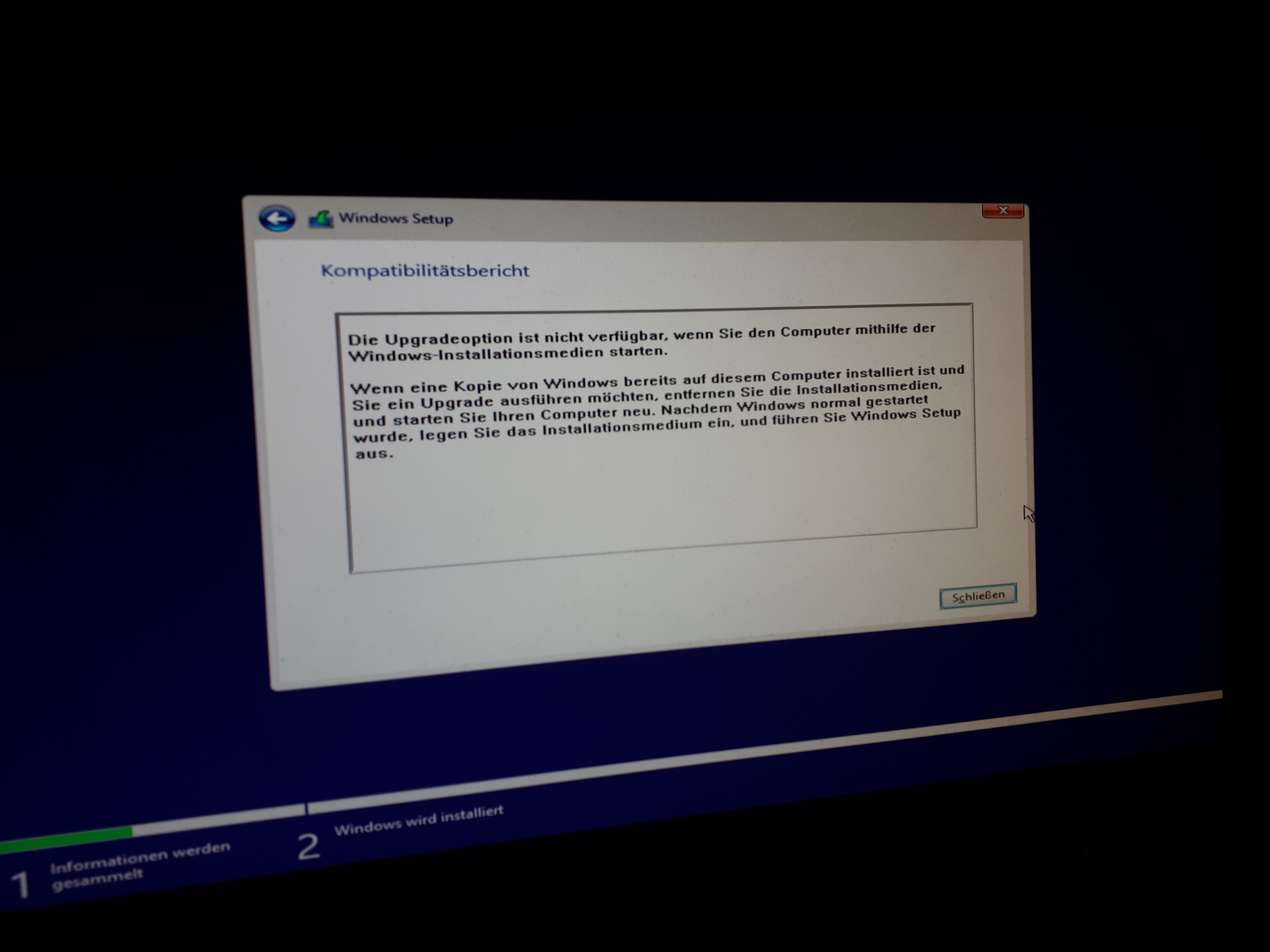 Hallo, wenn ich Windows 7 auf 10 mit USB upgraden will, taucht diese Meldung auf. Ist das bekannt? Was heisst eigentlich: "Entfernen Sie die Installationsmedien" ?