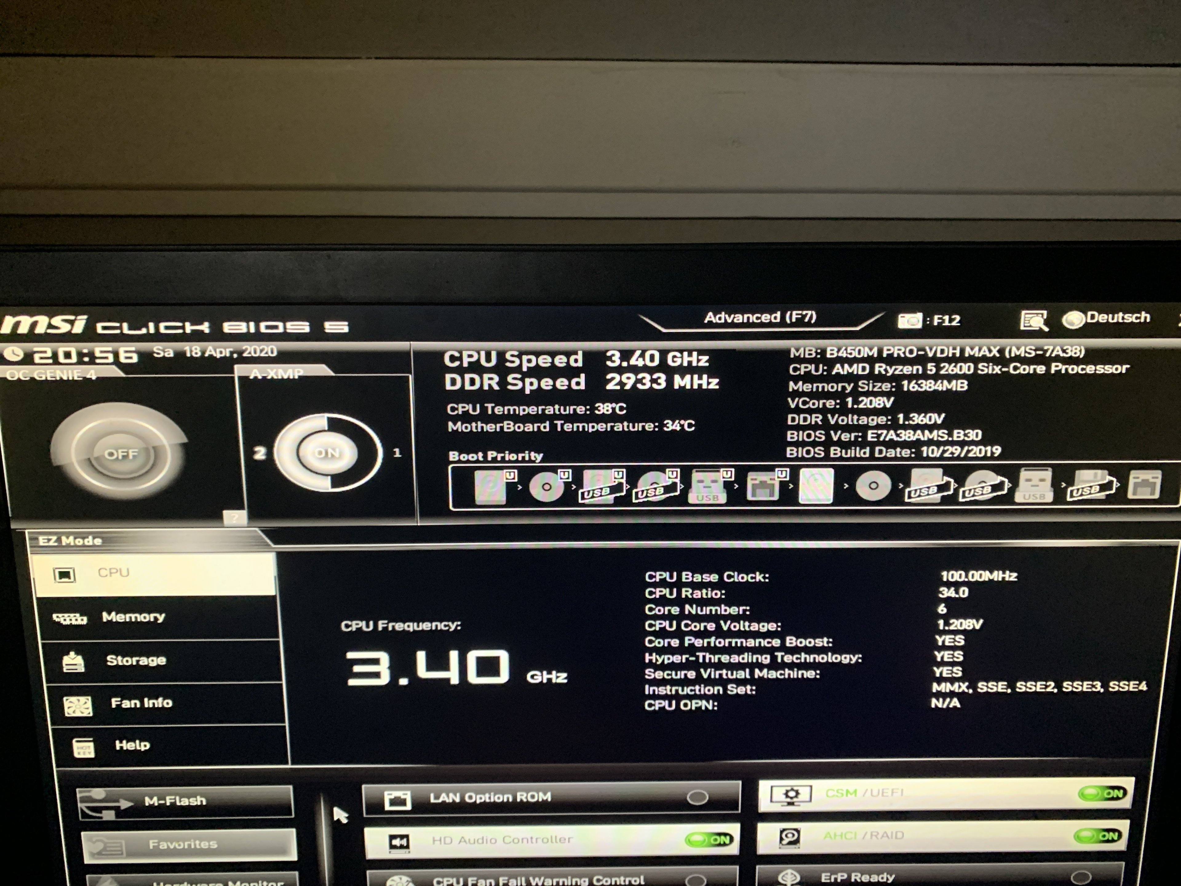 Setze dein Bios mal auf Werkseinstellungen zurück, kannst du auch über einen CMOS-Reset.Joshuakze schrieb:Was soll ich jz tun ? Habt ihr eine Idee ?