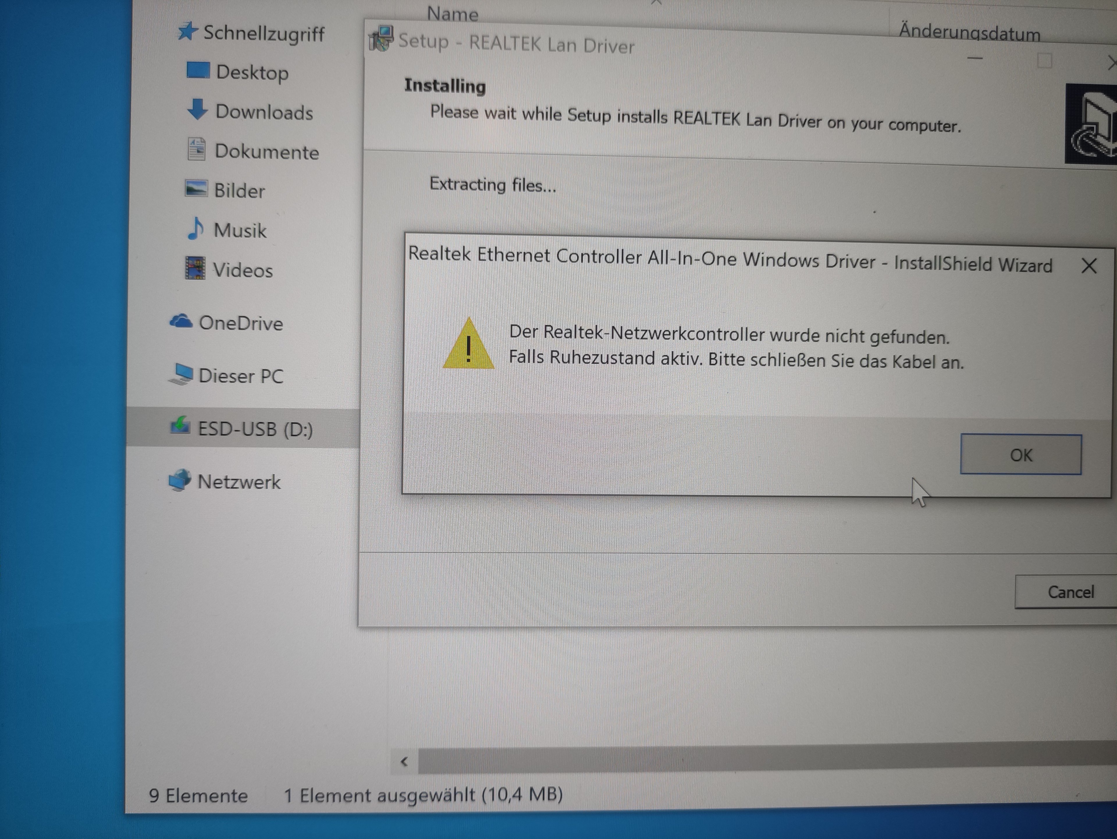 Netzwerkcontroller sein oder aber ein Installationsfehler meinerseits, was aber eigentlich bei mehrmaliger, nach Anleitung ausgeführter Installation nicht sein kann.