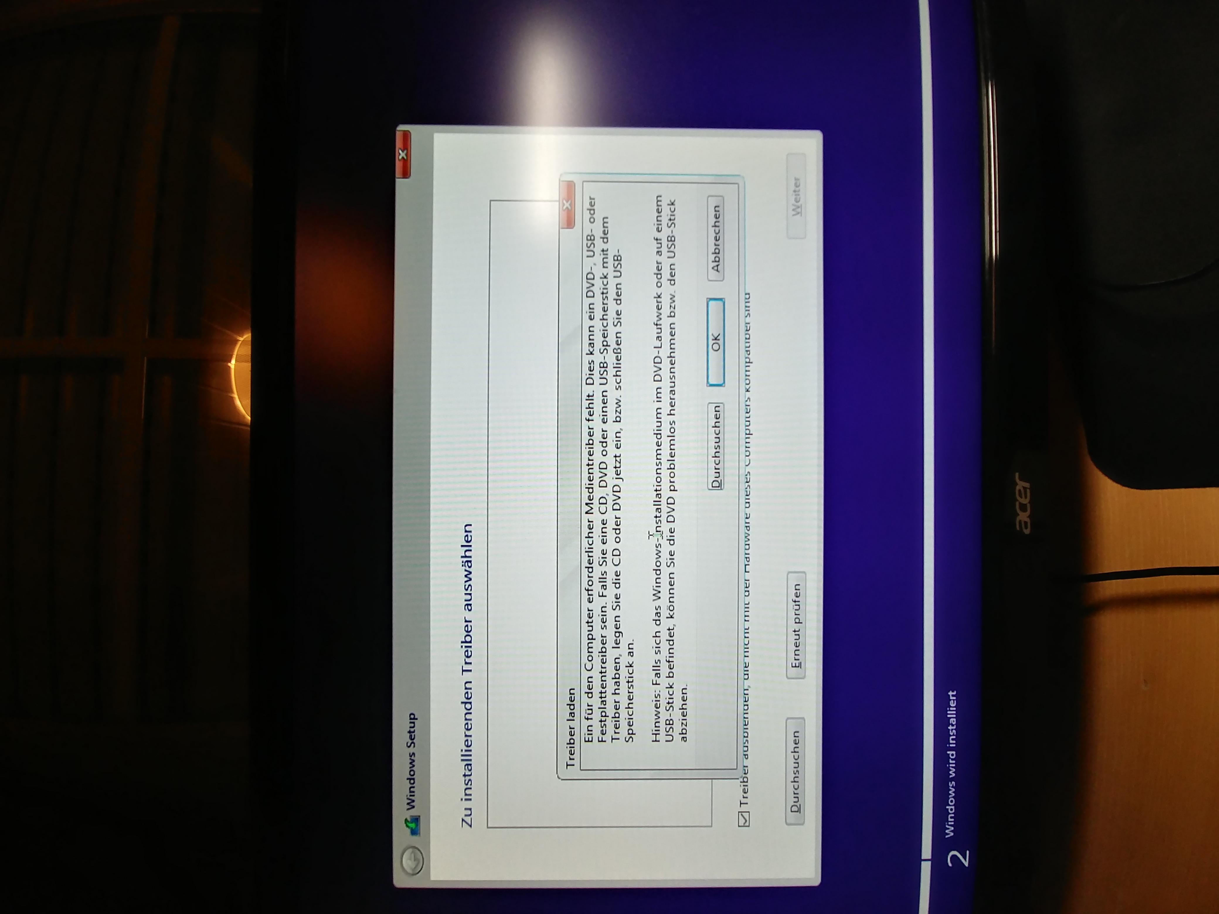 Dann habe ich glaube ich einen Fehler gemacht. Ich dachte ich muss unten auf "löschen" drücken um die SSD in einem neuen Partitionsstil anlegen zu können. Nachdem ich das gemacht habe kommt nun automatisch die Nachricht wenn ich Windows vom Stick installieren will "Ein für den Computer erforderlicher Medientreiber fehlt. Dies kann ein DVD-, USB- oder Festplattentreiber sein. ..."