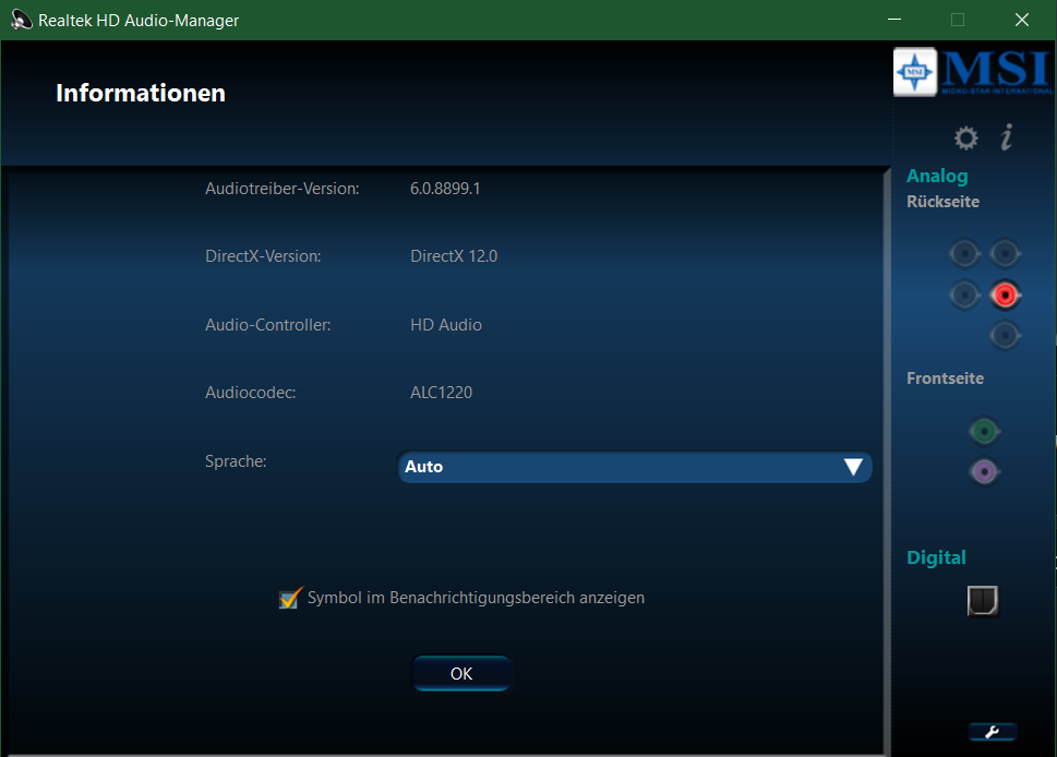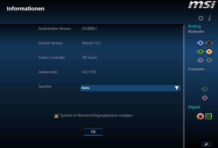 Nutze den Realtek Onboard Chip vom Mainboard MSI Z87-G45. Habe den neuesten Treiber probiert und den Original von der MSI Seite. Löschen und den Treiber von Microsoft Update übernehmen. Nichts geht. Gestern oder zumindest vor einigen Tagen lief alles noch reibungslos. (nutze keinen Digitalausgang sondern die Klinken Stecker)