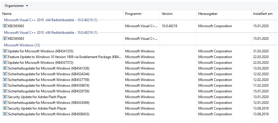 Ich nutze Windows 10 mit den neuesten Updates (anscheinend ein Fehler) 1909 und kleinere Patches.