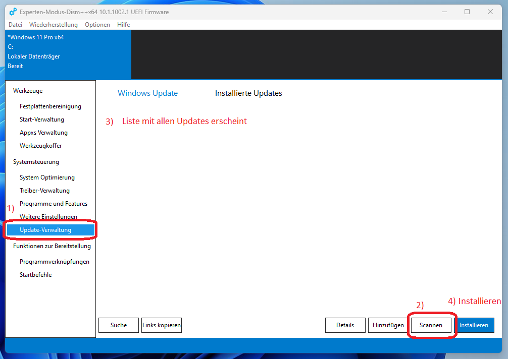 Die Funktion "Windows Updates" schreibt zwar, dass ich nicht auf den neuesten Stand bin, aber es werden keine weiteren Updates angeboten. Schon mehrfach versucht.