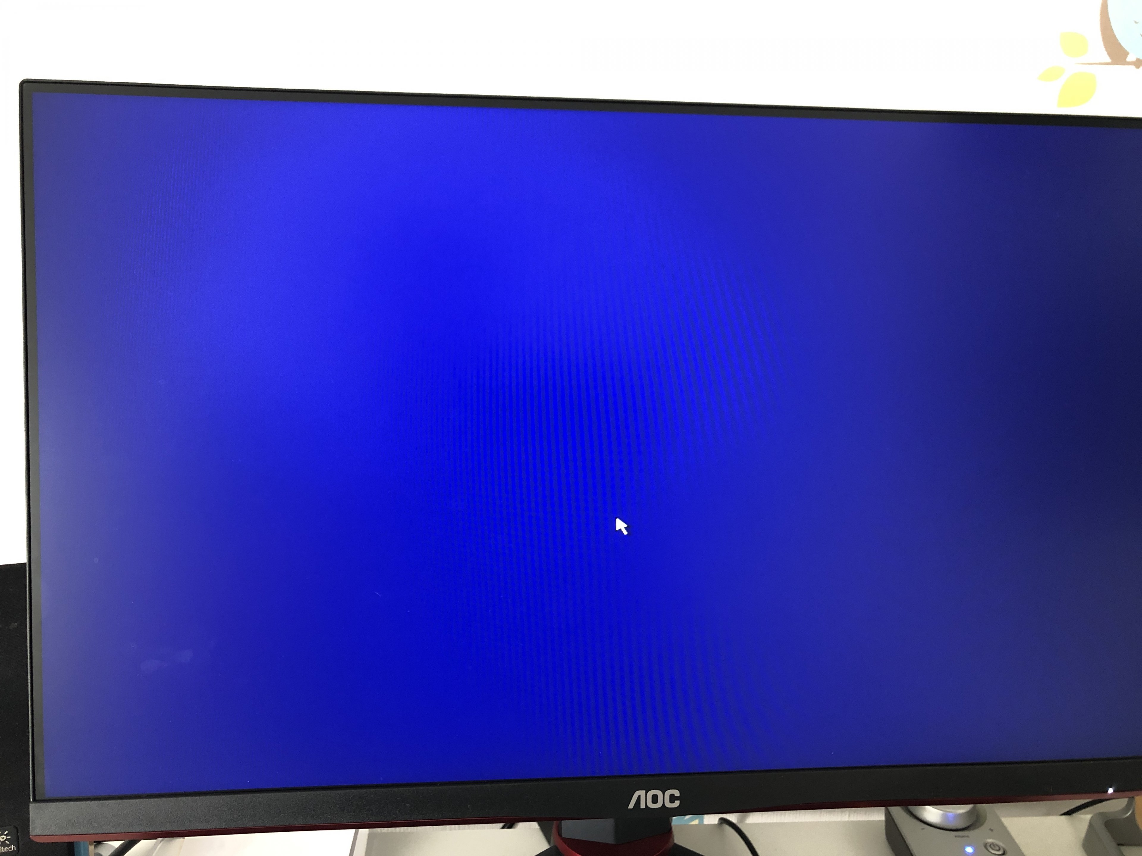 Beim Booten über den USB-Stick erscheint ein blauer Bildschirm ebenfalls mit Mauszeiger (Bild 5). Auch hier für eine Milisekunde ein Fenster.
