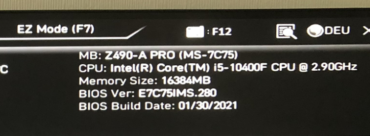 BIOS ist noch „out-of-the-box“ (am Mittwoch erst eingebaut) und ist die Version .280 vom 30.01.2021