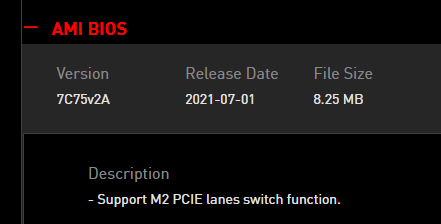 Mit Bios Version 7C75v23 (vom 26.08.2020) gab es - Improved memory compatibility.