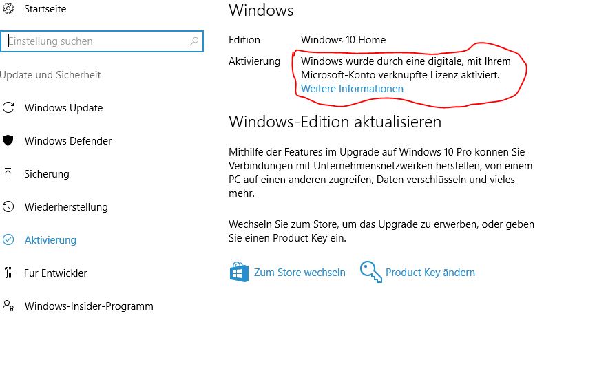 Seit dem lässt sich Windows 10 Pro nicht mehr aktivieren (Fehlercode 0x803f7001). Den Key für Windows 7, was vorher installiert war habe ich mit Hilfe eines Tools ausgelesen, da ich den original Key nicht mehr habe. Diesen Code habe ich eingegeben in den Einstellungen eingegeben, doch es erscheint immer wieder die oben genannte Fehlermeldung, ich hätte keine gültige Lizenz und solle mir doch eine neue besorgen. Vorher lief mit diesem Key alles super und ich hatte nie Probleme. Ich habe bereits versucht in den Einstellungen die Option "nach Hardwaretausch reaktivieren" auszuwählen, jedoch ohne Erfolg.