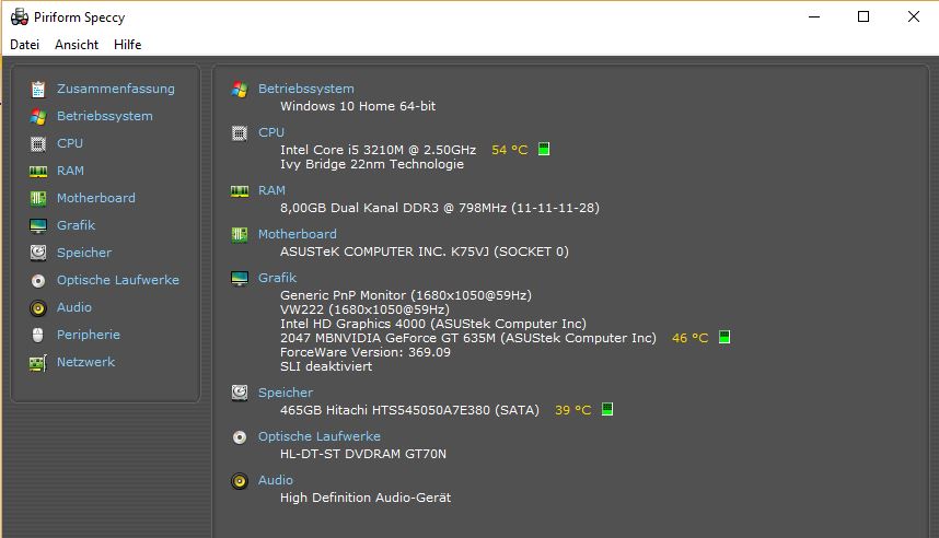 habe ein ASUS A75VJ-TY121H Notebook mit von mir nachträglich installiertem Windows 10 (nach kompletter Formatierung).