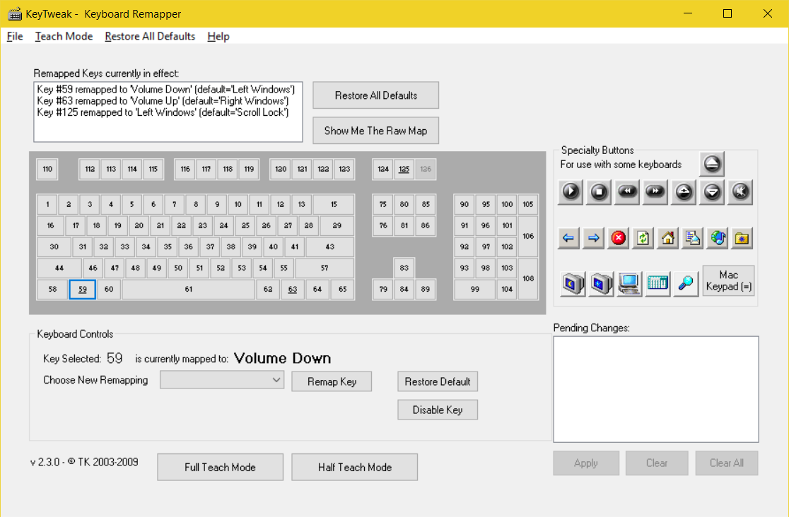 Der Schlüssel lässt sich zwar erfolgreich unter Windows 10 eintragen, jedoch hat es (auch nach einem Neustart) keine Auswirkungen auf die Lautstärke-Regelung. Der Eintrag bewirkt bisher lediglich, dass die Windows-Taste auf die Taste "Rollen" verlegt wird und die zwei Windows-Tasten damit ohne Funktion zurück bleiben.